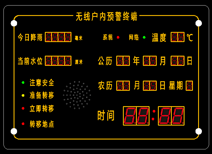 簡易雨量報警器由一體化簡易雨量計和家庭版入戶報警器兩部分組成,對降雨量進行實時采集,以無線組網方式將數據傳輸給室內家庭版入戶報警器,達到設定閥值后以聲、光、數據顯示形式進行預警。一體化簡易雨量站同時具有GRPS通信功能,可將室外采集站工況、雨量數據和報警信息實時上傳平臺,管理人員可實時掌控預警設備運行狀況,并可通過平臺推送報警信息。