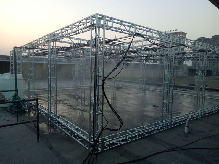 2、降雨模擬系統方案:是指在實驗區建成降雨區,降雨區為了有效的保證達了下墊面的實驗得以完成,有效降雨面為10×10米,總100平米,降雨高度為6米。整個降雨可以達到模擬人工降雨的效果,