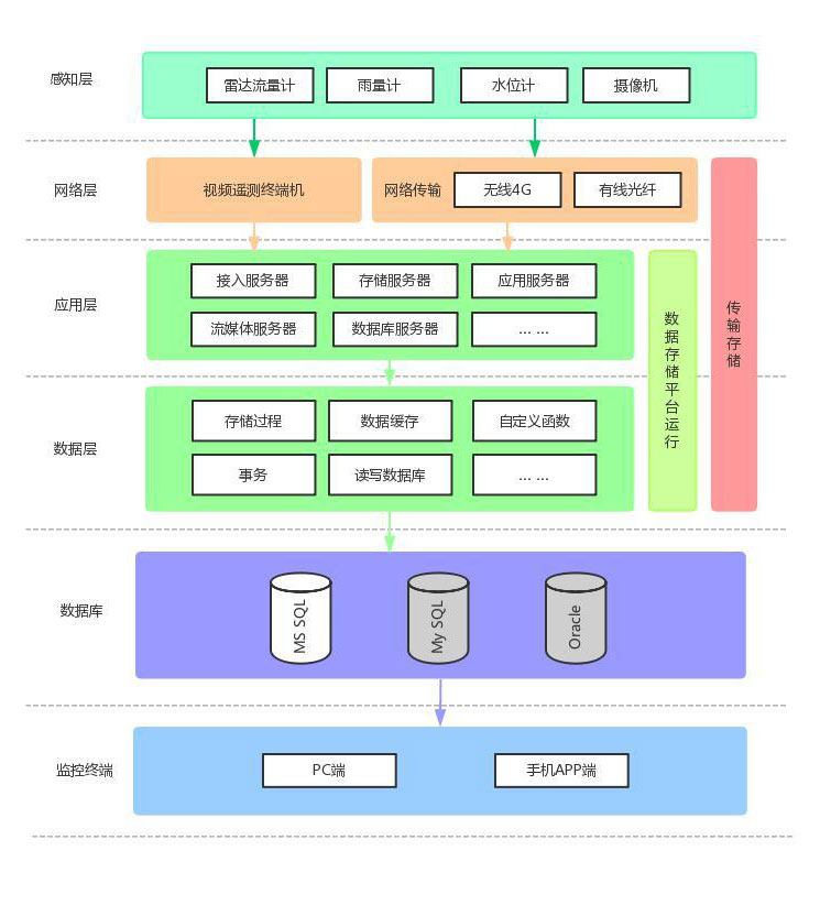 雨水情監(jiān)測系統(tǒng)還可以實現(xiàn)測站點水位高程、降雨量、庫容及視頻基本數(shù)據(jù)的自動采集、遠(yuǎn)程傳輸、處理和入庫,滿足水情報防汛要求。