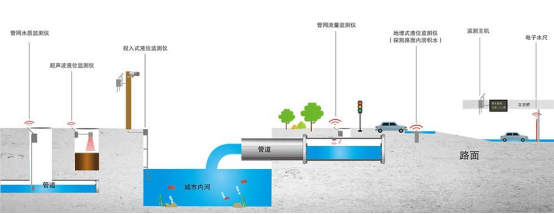 由污水井液位監測儀、雨水井液位監測儀、道路積水監測儀、電子水尺、水質傳感器、智能井蓋等不同類型傳感器構成,該層主要提供最新實時、穩定可靠的現場監測數據,為后續的管理應用平臺提供有效穩定的數據源